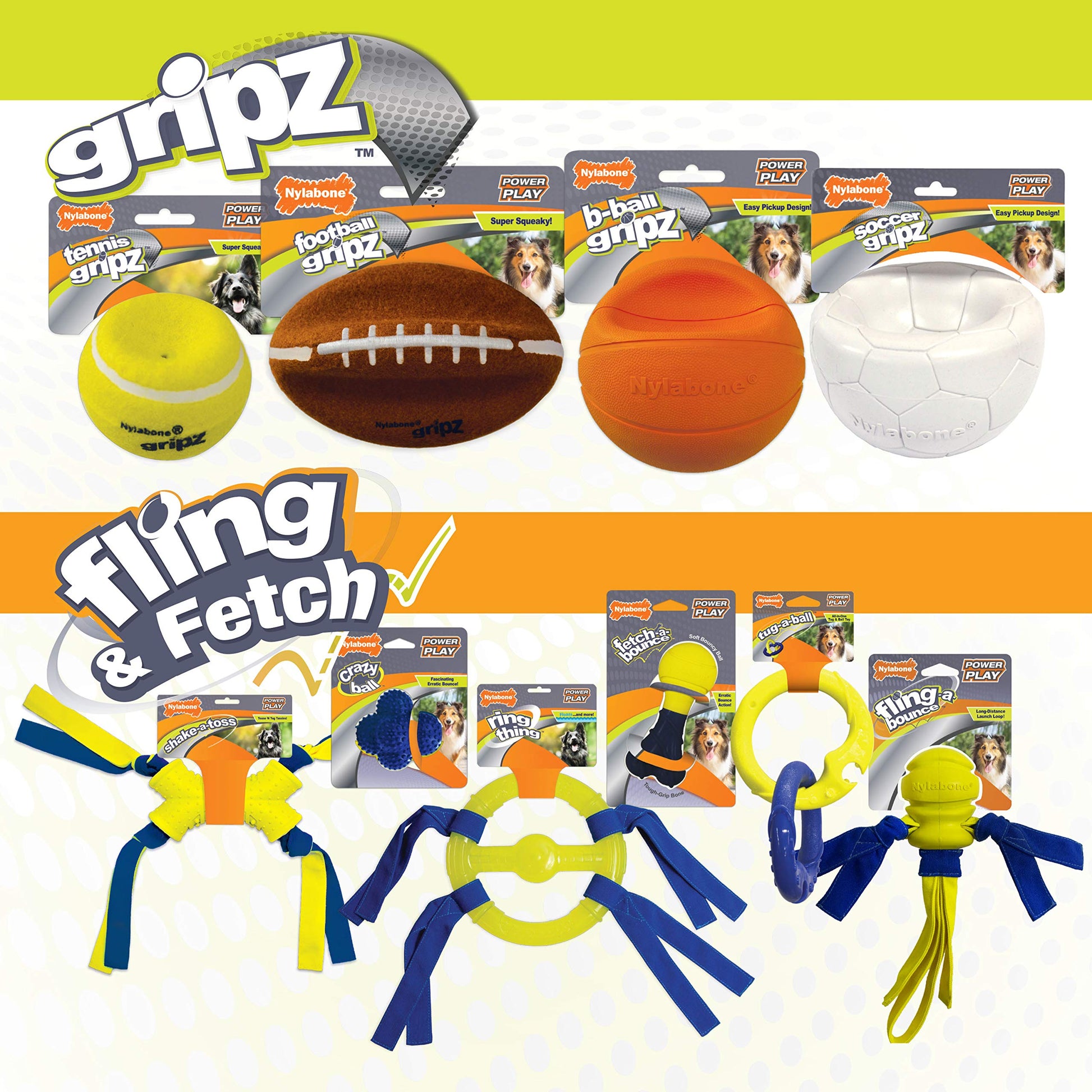 Power up playtime with Power Play Dog Toys from Nylabone! The odd-shaped Crazy Ball is a fun new take on a classic dog ball that offers limitless chasing, fetching, and bouncing fun! This bouncy dog toy has six raised sides and is covered with a grippy texture, giving your furry friend multiple grab points for easy pick up. No matter what surface you’re playing on, dogs will go crazy for the Crazy Ball’s fascinating bounce—it even bounces on grass! This ball for dogs can also be thrown up to 125 feet and has a hollow core that can make a whistling sound as it soars. Finally, a fun dog toy that steps up the challenge in your typical chase and fetch game! Bounce crazier, chase farther, and play harder with the Original Crazy Ball textured dog ball!